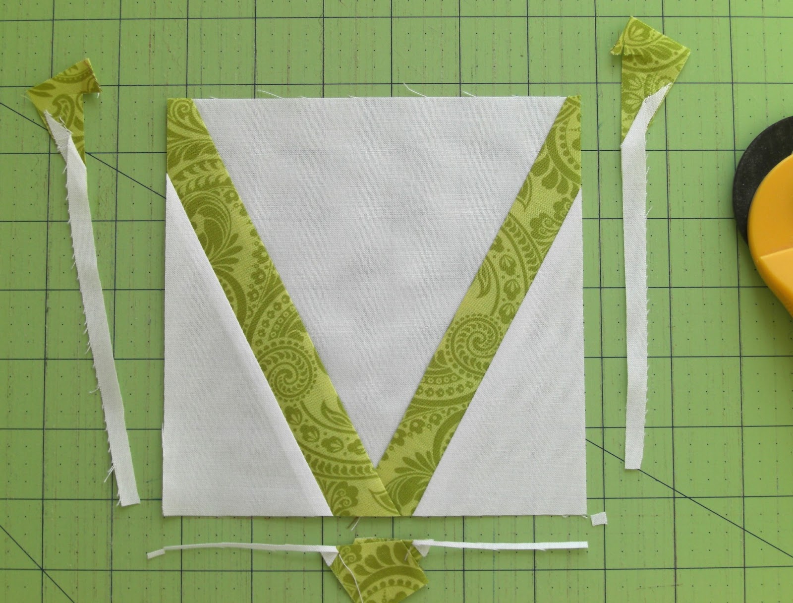 Then trim back to a 6" x 6" square.
